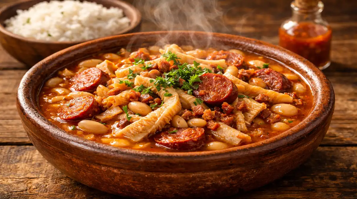Um clássico inconfundível da culinária brasileira! Descubra o segredo para uma Dobradinha Paulista perfeita: bucho macio, totalmente sem cheiro forte, cozido lentamente com feijão branco, muito bacon, calabresa e temperos frescos. O prato ideal para reunir a família no almoço de domingo.